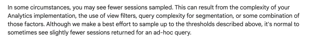 Google also notes that data sampling can occur at lower thresholds when you are trying to get granular insights. If thereās not enough data or because Google thinks itās too complex to retrieve.Ā