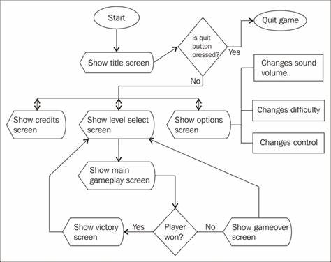 This example highlights the decision points in the player journey using diamond shapes to show which parts of the game lead to specific outcomes. In this case, those decision points are if the player won and if the quit button was pressed. By analysing these decision points, game designers can optimise the player experience and increase engagement.