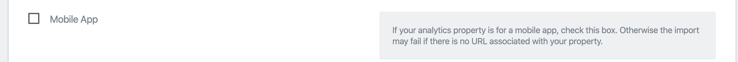 If you don’t check this box and your property is for a mobile app, the importer will ignore this data.