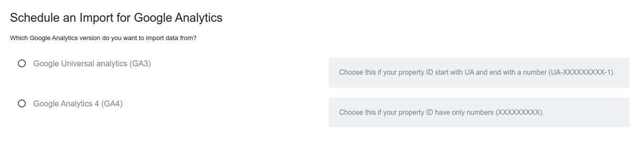 - Go to the Google Analytics Import admin page.