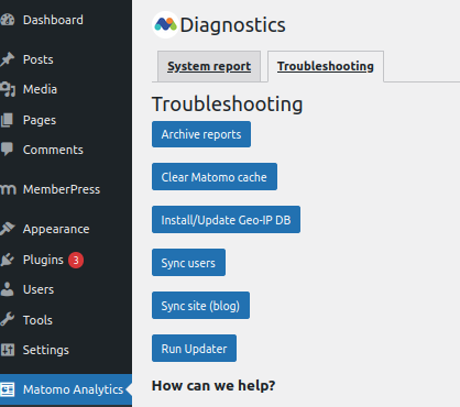 To force your user data synchronization between WordPress and Matomo, please click the button “Sync Users” from the “Matomo Analytics > Diagnostics > Troubleshooting” page.