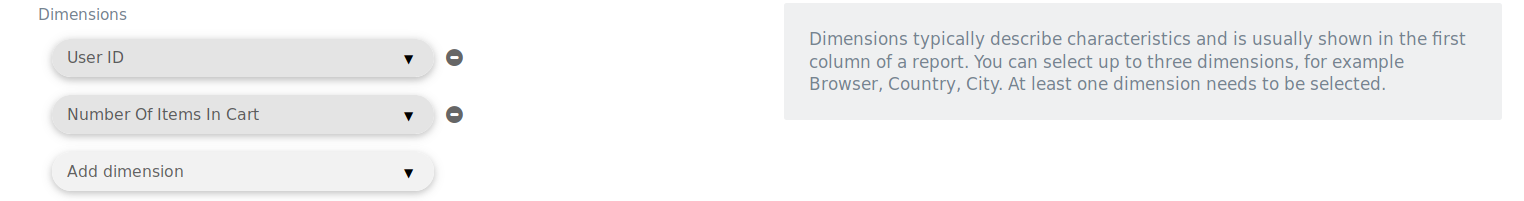 4. Under “Dimensions”, add “User ID”, “Number of Items in cart”