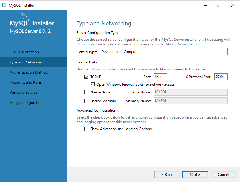 Enable TCP/IP Networking — This is the default. Keep the TCP port that MySQL uses to listen at 3306. If the database will be running on a separate system from the Web server, select the Add firewall exception for this port check box.