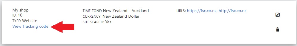 1. In Matomo, copy your Matomo tracking code to a text editor. You will find your tracking code in Administration > Measurables/Websites > Manage > View Tracking code