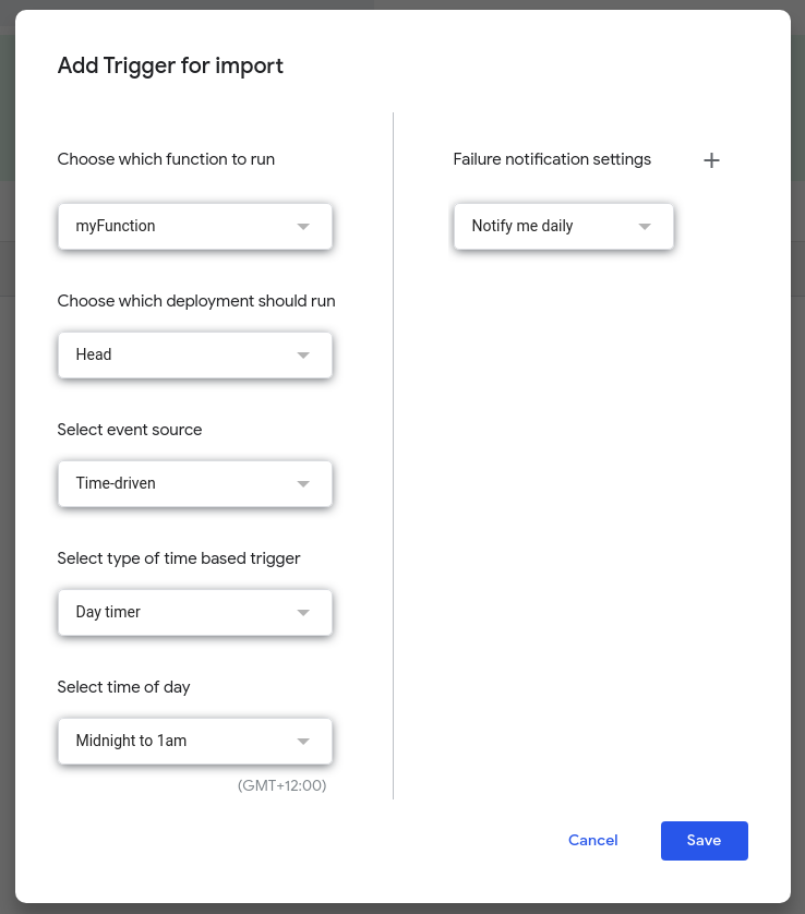 Next, we’re going to create a trigger to automate the import process into the Google Sheets