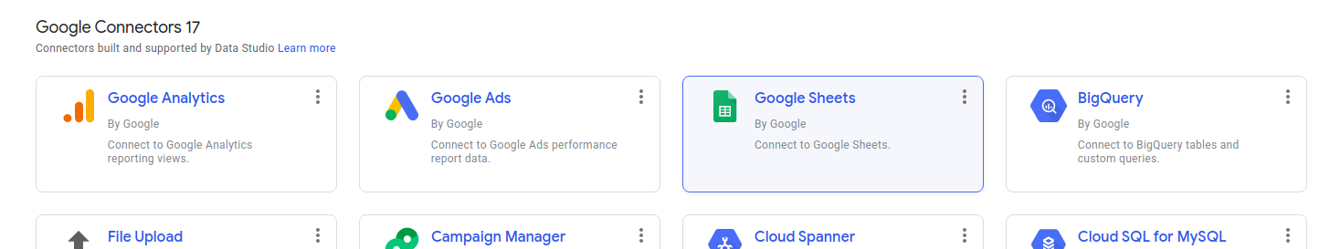 4. Click Google Sheets, you may need to authorise Looker Studio to gain access.