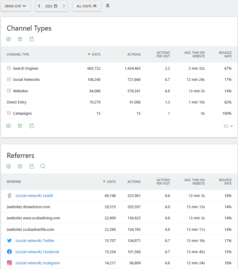 • Identify which sources consistently drive visits such as search engines, partner websites, or social media platforms. This information supports the management and development of valuable referral relationships.